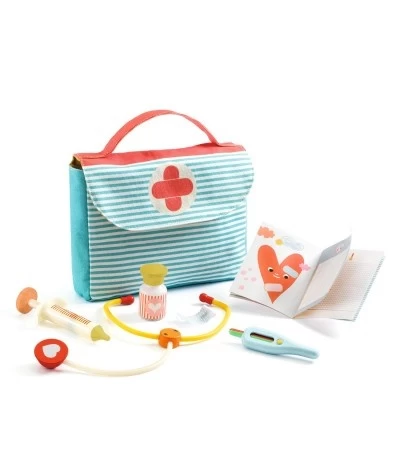 Doktertje spelen, welk kind heeft het niet gedaan? Met deze prachtige dokterstas van het Franse merk Djeco hebben kinderen de grootste pret. Zoek de hartslag met je stethoscoop of neem de temperatuur op van je patiënt.