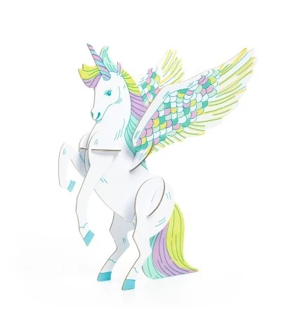 Kleur de stevige, voorgesneden, kartonnen vormpjes mooi in en druk ze uit. Schuif ze in elkaar tot prachtige 3D figuren en verzin je eigen verhalen.
