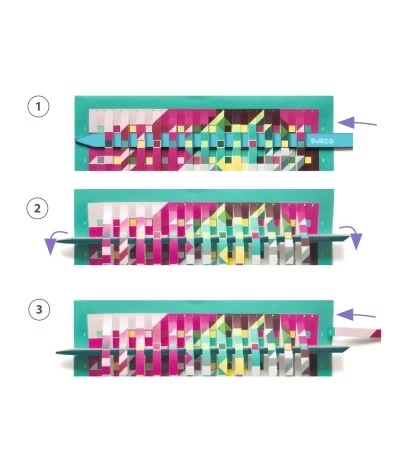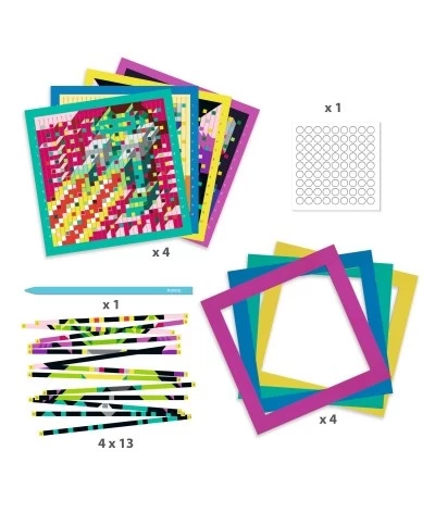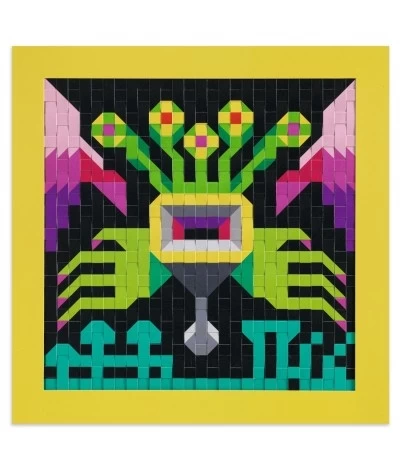 Maak mooie pixel art knutselwerkjes met dit knutselsetje van Djeco. Met behulp van bijgeleverd gereedschap schuif je de stroken papier in het gedeeltelijk bedrukte en genummerde raster. Als je goed kijkt zie je vanzelf ‘invaders’ tevoorschijn komen! Robots, aliens en zelf een UFO.