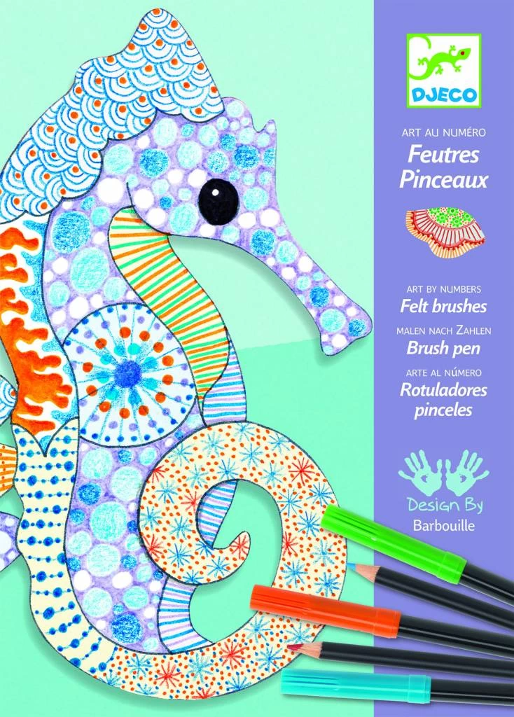 Inhoud: 4 voorbedrukte afbeeldingen van karton (28×21 cm), 5 viltstiften, 4 kleurpotloden, stap-voor-stap instructieboekje.