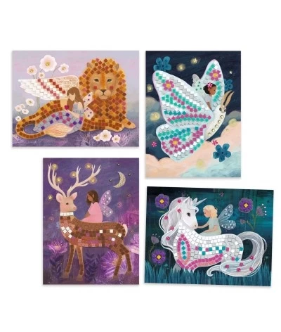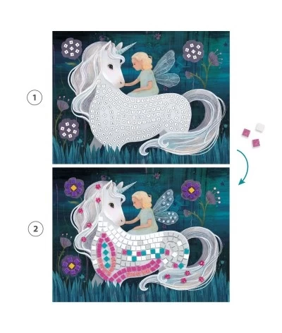 Laat de betoverende werelden stralen door ze te versieren met prachtige foam mozaïek stickers. Leer kinderen al jong kennismaken met de wondere kunstwerken van Mozaïek met dit prachtige knutselsetje van Djeco. Plak de bijgeleverde foamstickers via de kleurcodes op de lege plaatsen en maak prachtige kunstwerkjes.