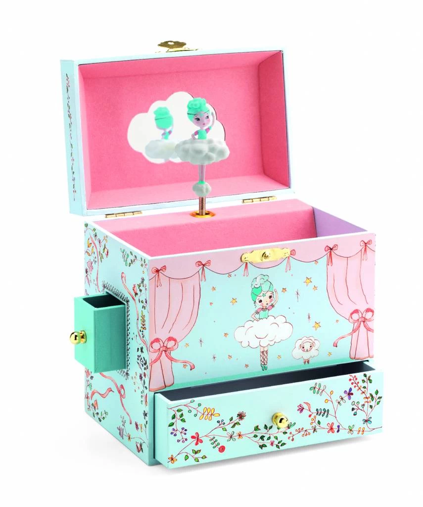 Elk klein meisje heeft sieraden en heeft een plaats nodig om deze op te bergen. Dit prachtige sieradendoosje een hoofdvak met een spiegeltje, een lade en een verborgen vakje aan de zijkant voor kleine geheimpjes. Het doosje heeft ook nog een mooie ballerina die ronddraait op haar favoriete liedje ‘Romance of Love’