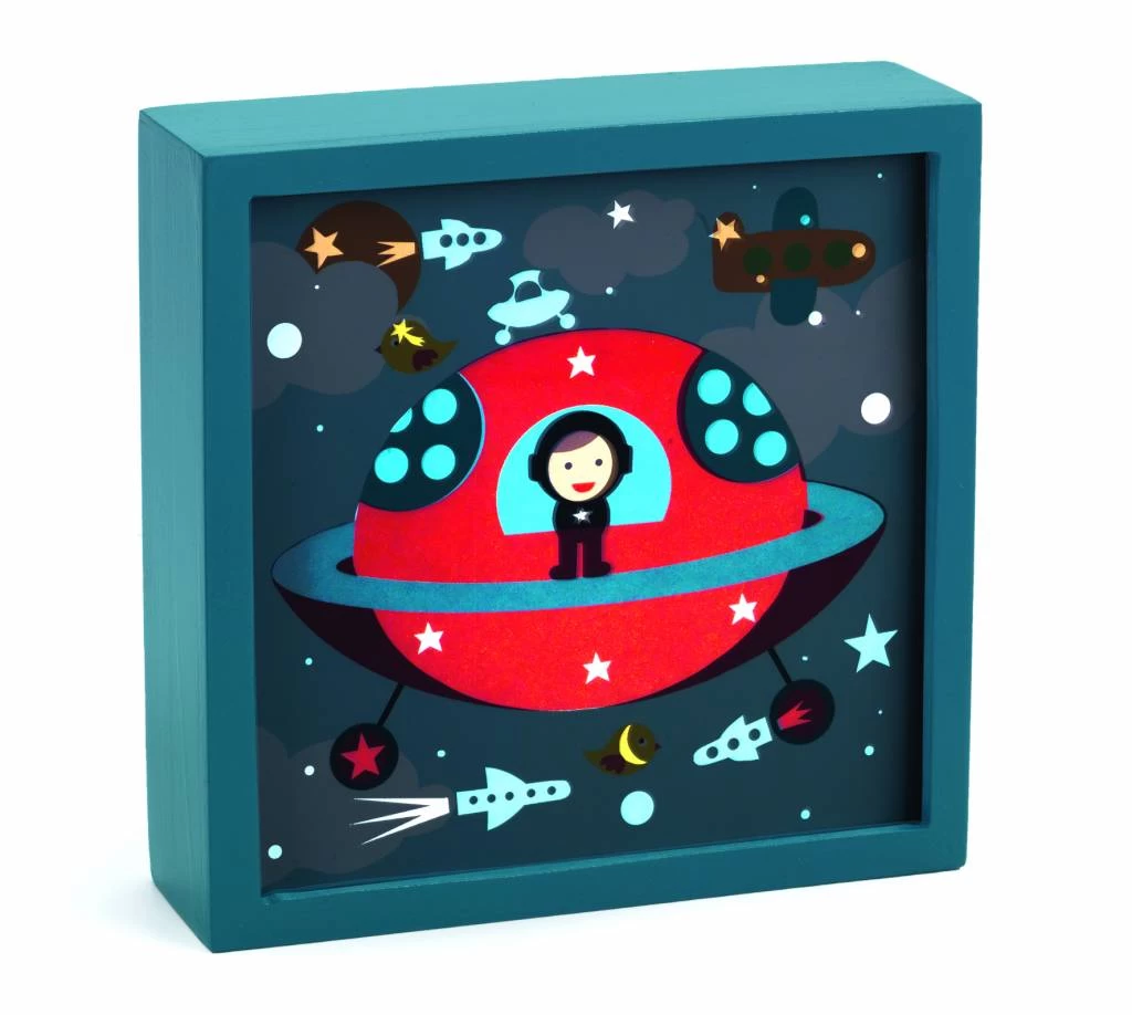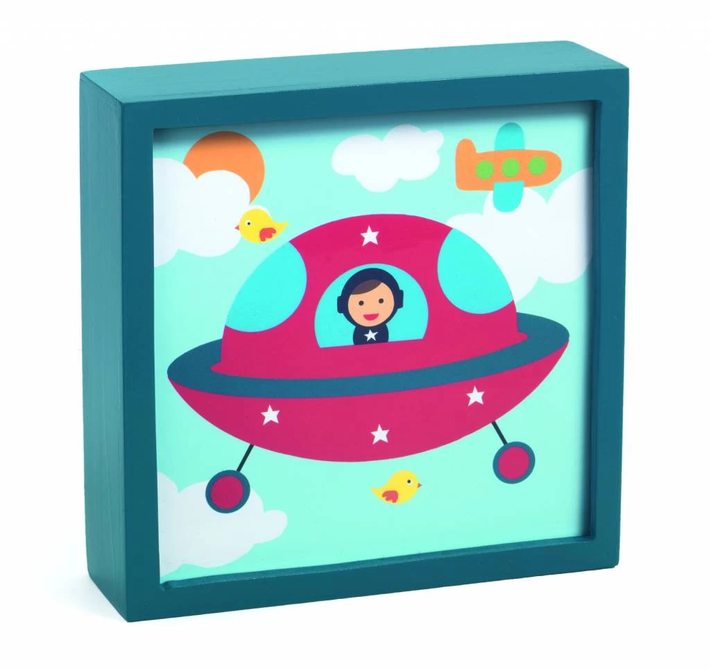 Als het donker wordt dan veranderd dit leuke schilderijtje in een magisch nachtlampje.