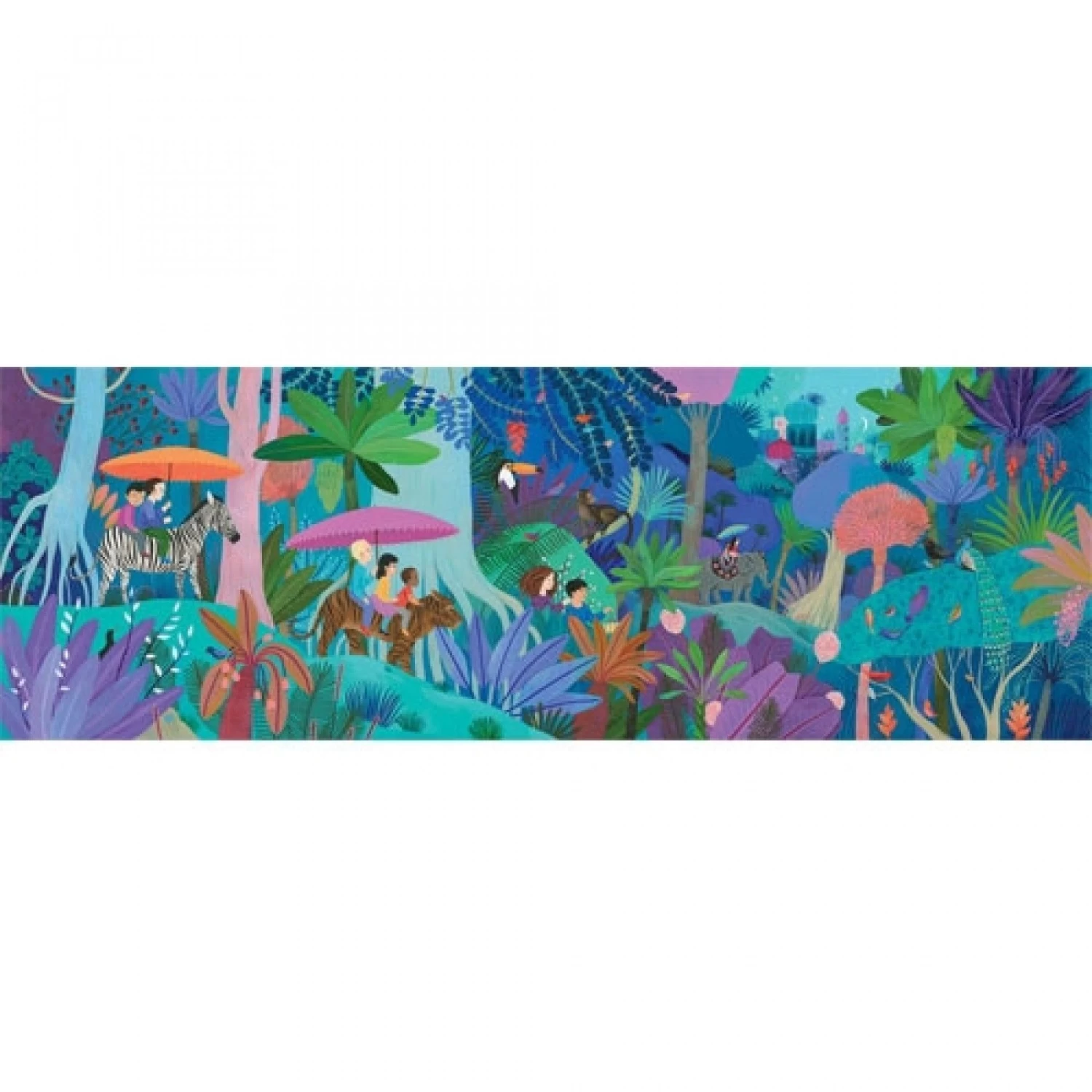 Deze puzzel bevat een afbeelding van kinderen die op de rug van verschillende dieren een wandeling door het bos maken, de droom van elk kind. Bijgevoegd is een poster van de puzzel waarop je de puzzel eventueel kan maken wanneer hij nog iets te moeilijk is.