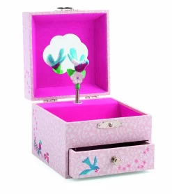 Elk klein meisje heeft sieraden en heeft een plaats nodig om deze op te bergen. Dit prachtige sieradendoosje heeft een hoofdvak met een spiegel, een lade en ook nog een schattig vogeltje dat ronddraait op haar favoriete liedje: ‘Le temps des cerises’ van Antoine Renard