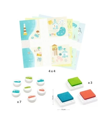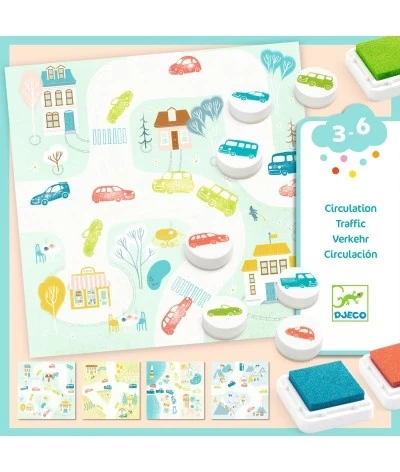 Leuke stempelset van Djeco met als thema voertuigen. Breng de bijgeleverde geïllustreerde kaarten tot leven door ze te versieren met verschillende voertuigen. De kaarten passen aan elkaar waardoor je een geweldige route kan maken! Gegarandeerd speelplezier.
