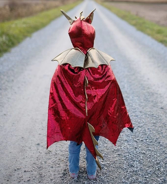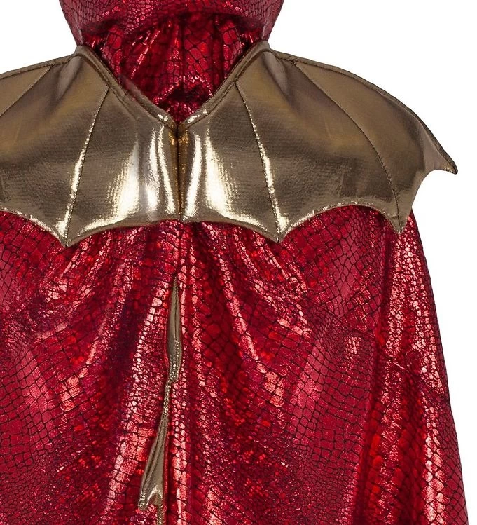Kijk uit voor deze enge, rode vuurspuwende draak! Met de rood met gouden schubben cape met capuchon is je kindje niet te onderscheiden van een echte draak! De gouden schubben komen langs de achterkant van de cape en gooien alle ridders die langskomen van hun paard. De cape is zacht en heeft grote gouden schuim oren en schubben.