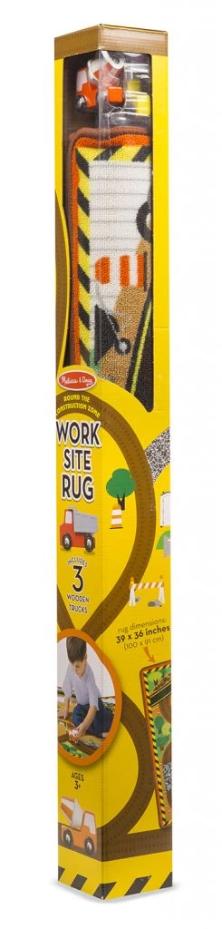 Heerlijk zacht speelkleed van Melissa and Doug met 3 houten werkvoertuigen. Rij ze naar de werkplaats en verplaats het zand. Goed voor urenlang speelplezier.