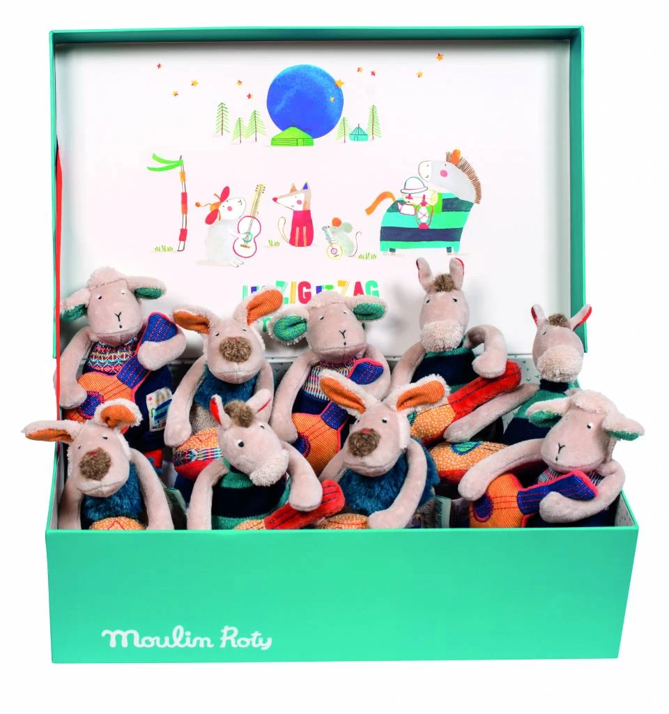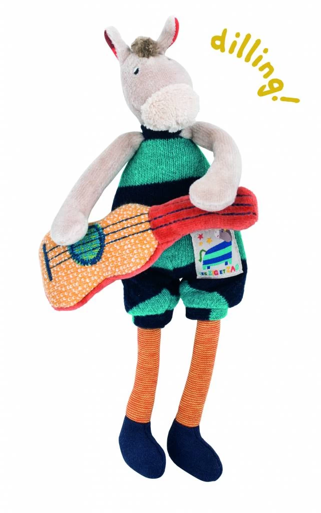 Dit leuke paard van Moulin Roty is 23 cm lang en dol op muziek maken. Hij speelt het liefst gitaar en neemt m daarom ook overal mee naar toe.