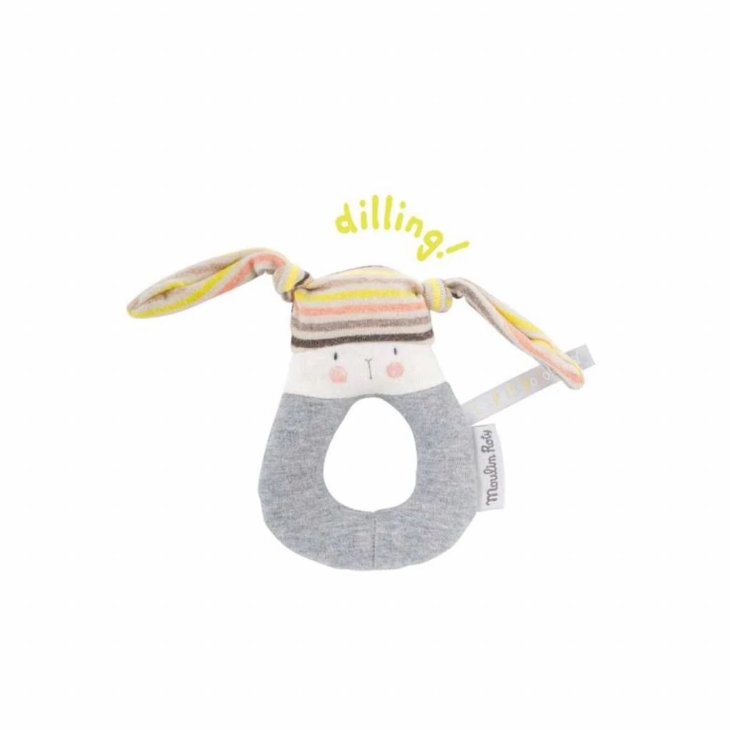Deze lieve rammelaar van het mooie merk Moulin Roty is gemakkelijk te grijpen door kleine handjes.