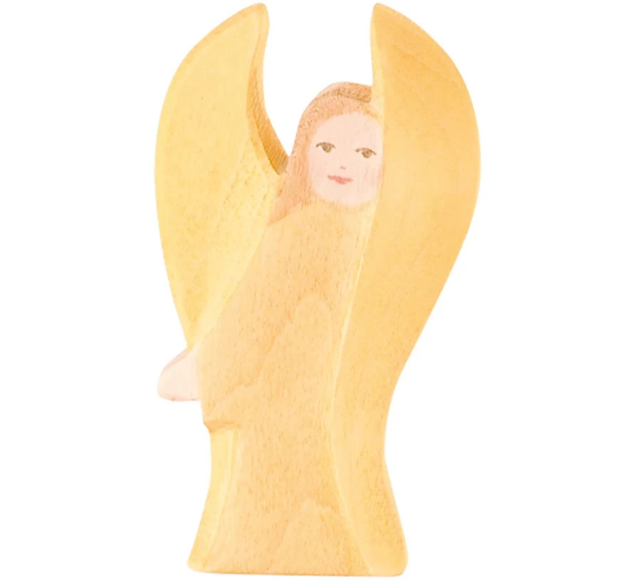 Deze prachtige engel met gele jurk en grote vleugels is handgemaakt en hand geschilderd. Zet haar op de kersttafel of als decoratieve beschermengel.