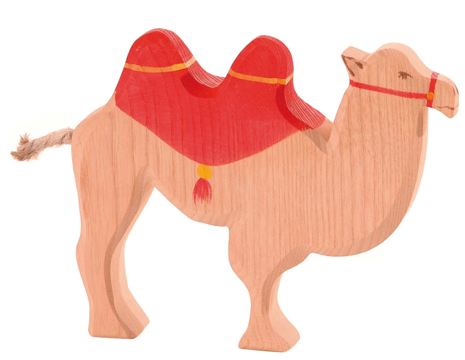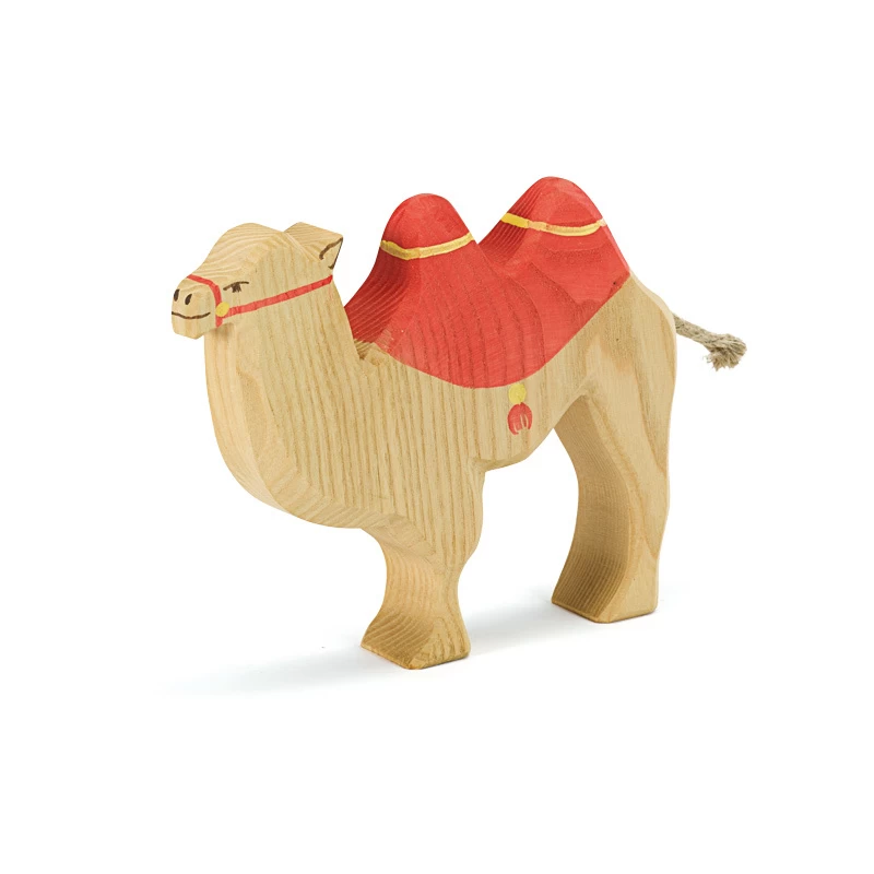 Mooie handgemaakte houten kameel met beschilderd zadel. Gecombineerd met de kameeldrijver en de koningen staat hij prachtig bij de kerststal tijdens kerstmis.