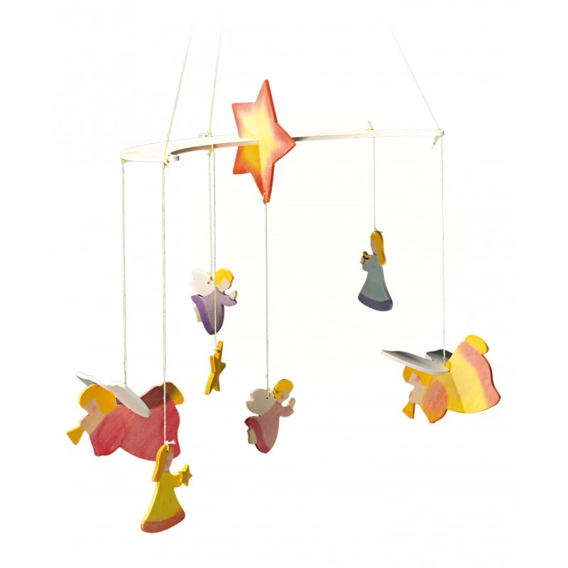 Wanneer deze engeltjes boven je vliegen weet je zeker dat je lekker zult slapen! Zoals elk product dat Ostheimer maakt worden ook de houten mobiles met veel liefde en zorg gemaakt en met de hand geschilderd.