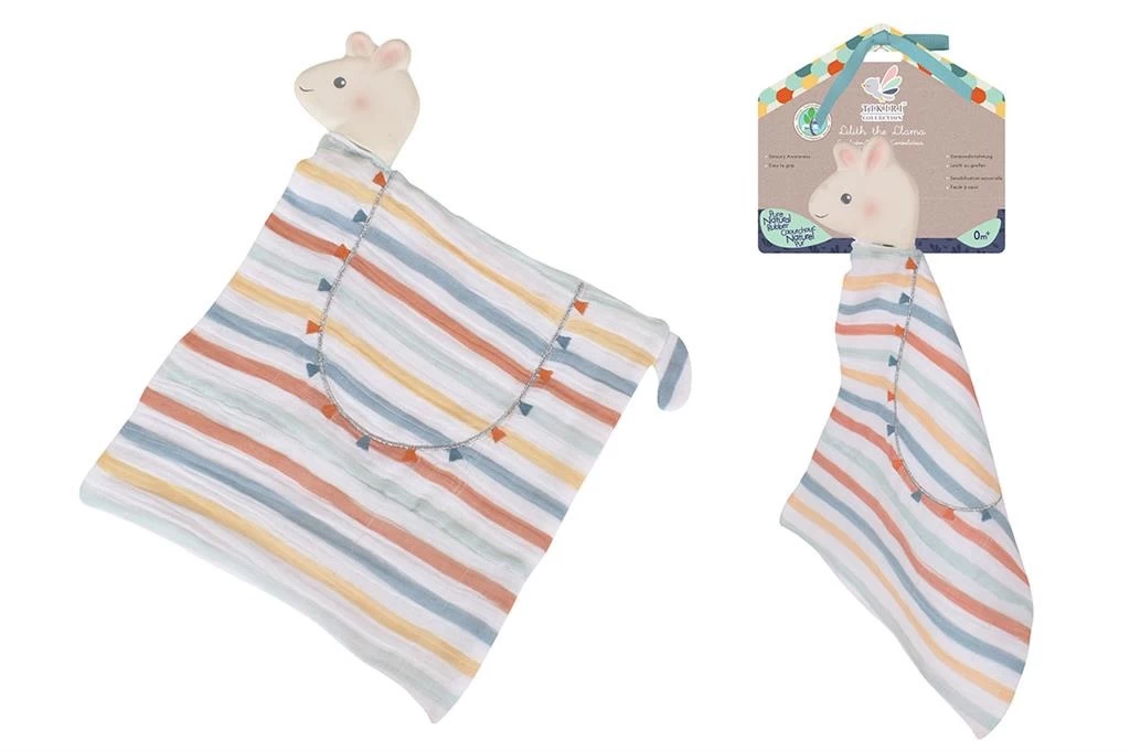 Dit knuffeldoekje van Tikiri is heerlijk om mee te knuffelen maar kan tegelijkertijd verlichting geven bij doorkomende tandjes. Het hoofdje is namelijk gemaakt van natuurrubber en heerlijk zacht en veilig om in te bijten. Leuk om te geven bij een babyshower of als kraamcadeau.